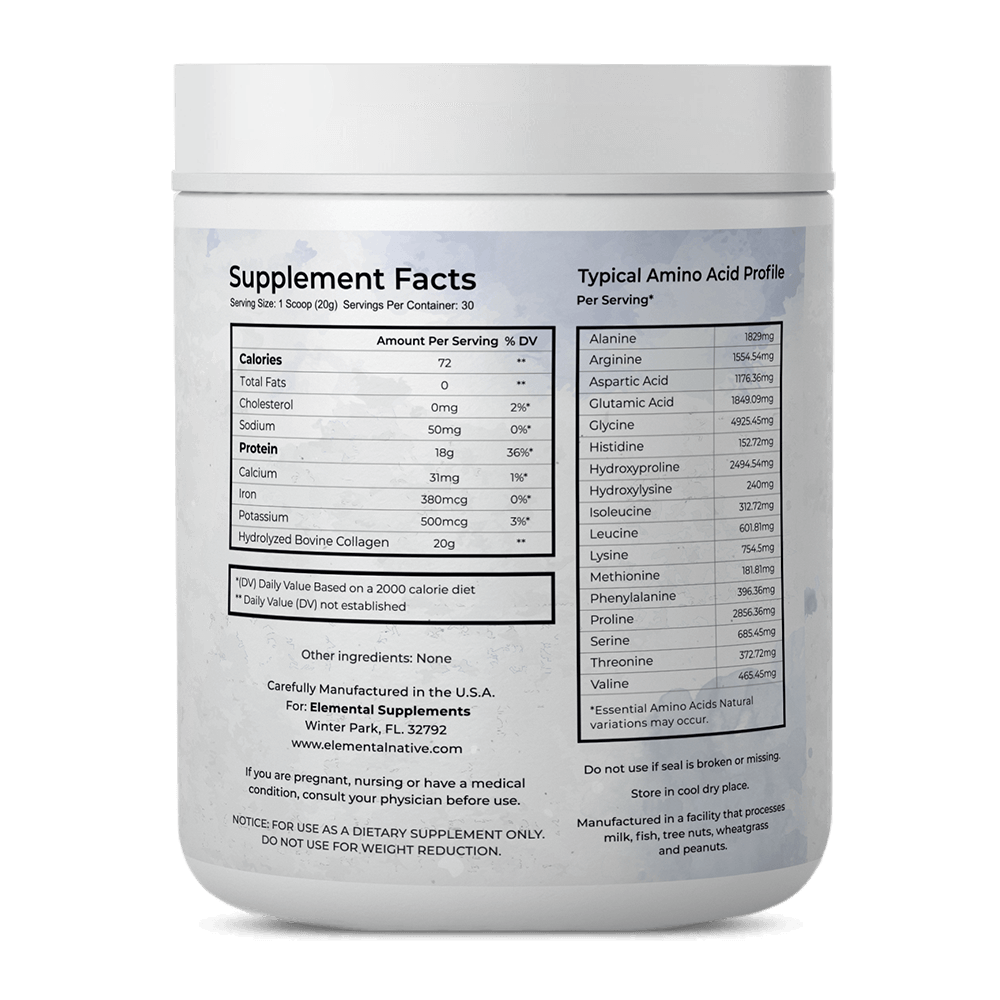 Essentially it is the glue that holds the body together. It gives strength, structure, elasticity and cohesion to bones, organs, skin, muscles, joints, tendons, ligaments and cartilage. As we age, our natural collagen levels decrease. Supplementing with our high quality, hydrolyzed collagen is crucial to help maintain optimal levels of this important protein.*