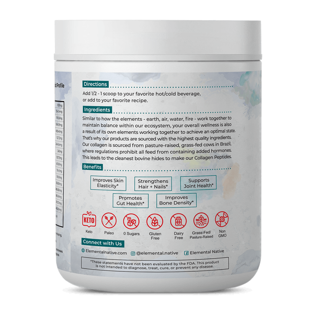 Our Collagen Protein begins as grass-fed bovine collagen and then is broken down further into smaller, parts via a controlled enzymatic hydrolysis process. This enzyme treatment not only allows for the collagen to be broken down into more easily digestible particles, but it also makes it more bioavailable, meaning it can more effectively be absorbed and used by the body.