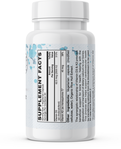 Current research shows the important synergistic relationship between Vitamin K2 and Vitamin D3. Taking Vitamin D3 with Vitamin K2 helps to ensure the calcium transported by the Vitamin D is absorbed by your bones where it's needed, rather than accumulating in deposits in your arteries.*