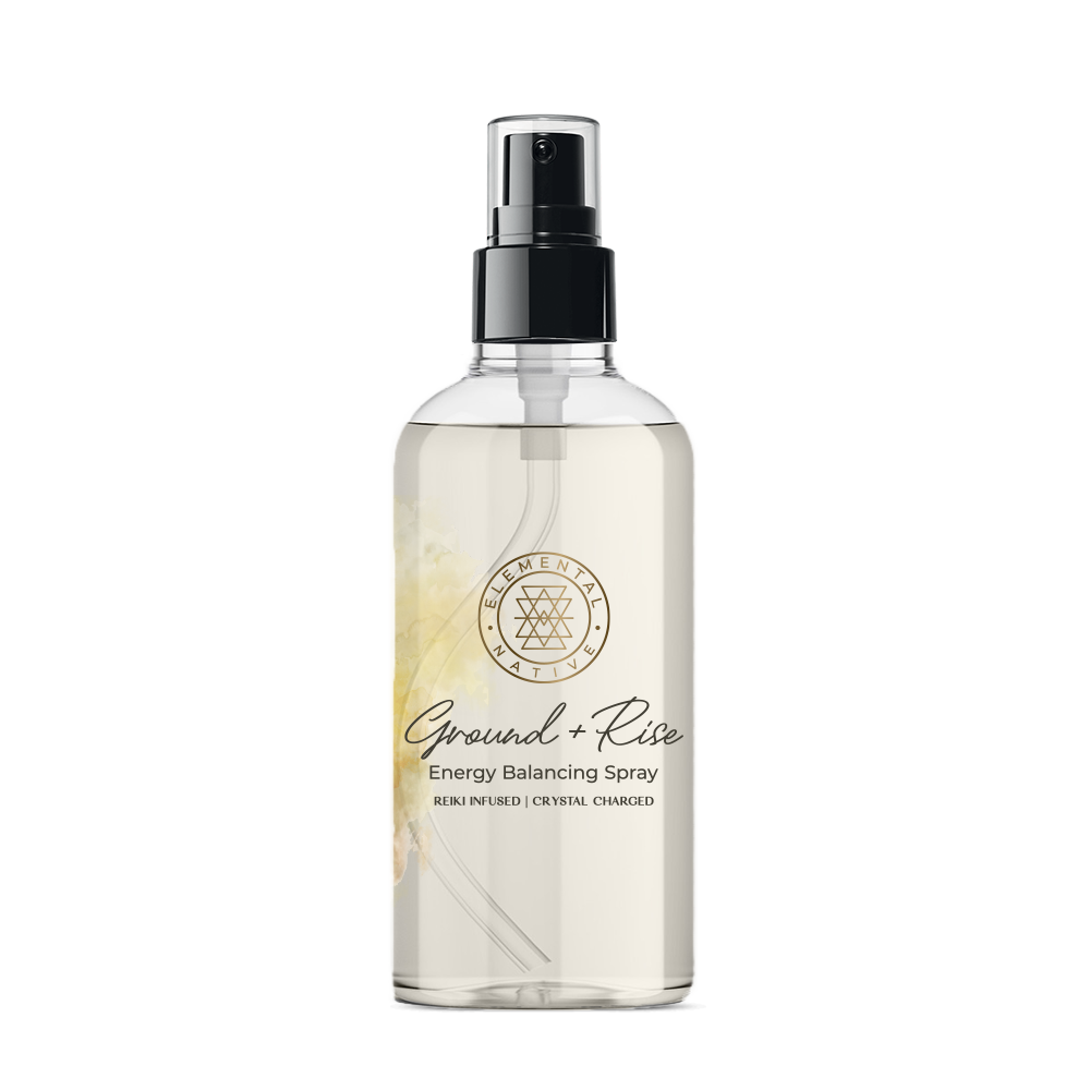 • Our Ground + Rise Energy Balancing Spray is a wonderful way to clear and ground yourself/your environment. The more grounded we are in our most authentic essence, the more we can rise to fully create, receive, grow, and manifest the desires of our souls. Mist this spray as a great smokeless alternative to burning sage or Palo Santo.