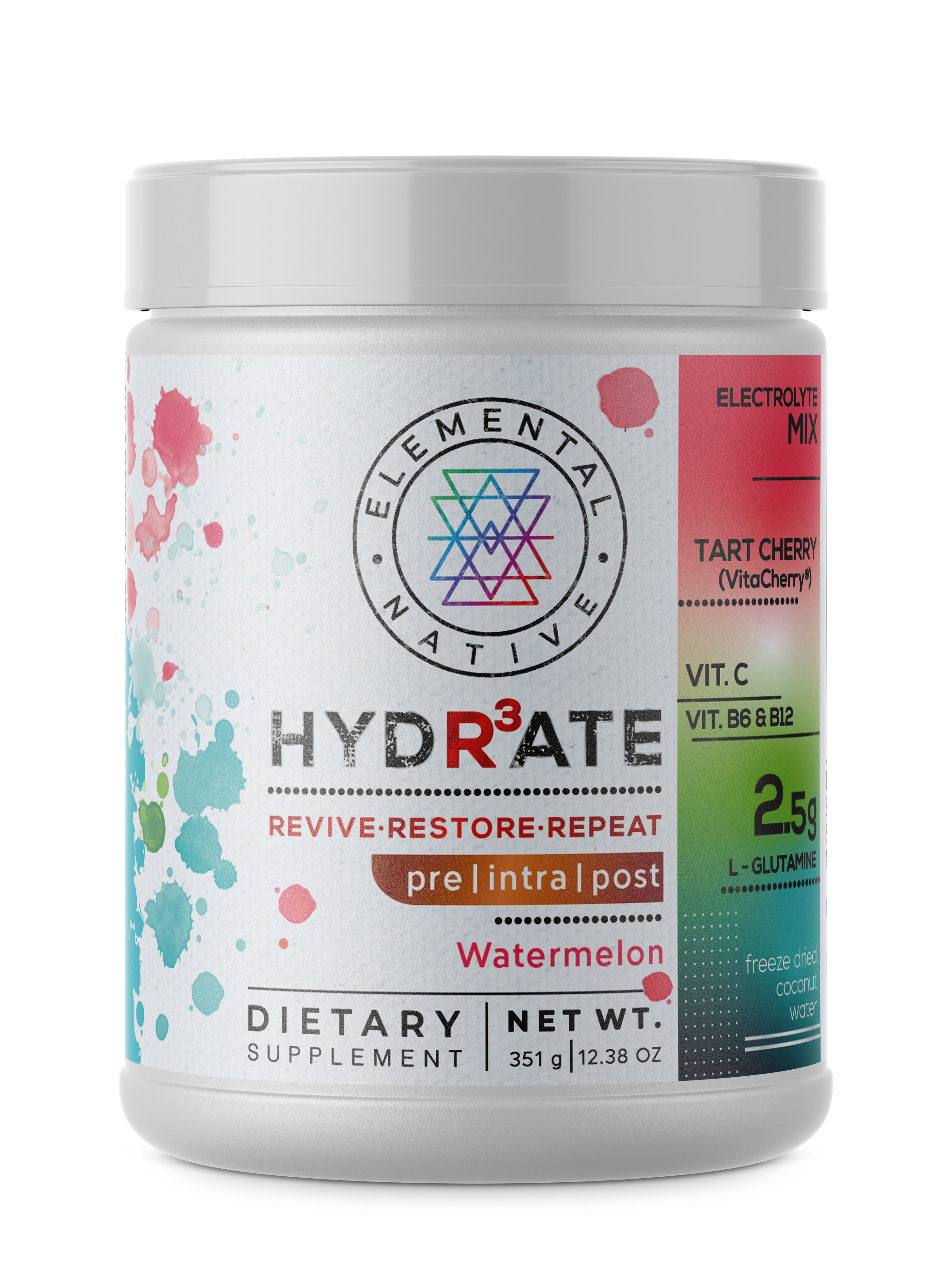 Our Hyrdrate electrolyte mix can be taken pre-, intra-, or post-workout.